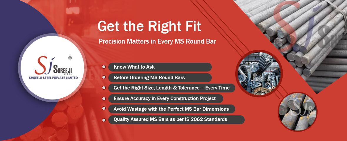Shree Ji Steel Private Ltd supplies a wide range of high-quality round bars, including mild steel round bars. All our materials are commercial grade as per IS 2062 standards. For strong and durable MS bars, contact us.
